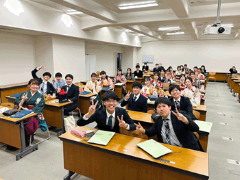 新1年生はこれから始まる新たな大学生活に不安や期待を抱えながら会場である山口維新公園に向かう様子が見られました。式では岡正朗学長が挨拶の中で、令和に改元する記念すべき年に入学した1年生への歓迎と、これからの大学生活に対する激励の言葉を送られました。また、在校生は新入生の入学祝いと部活やサークルの勧誘に向けて早くから準備し、新しいメンバーを迎えようと意気込んでいました。